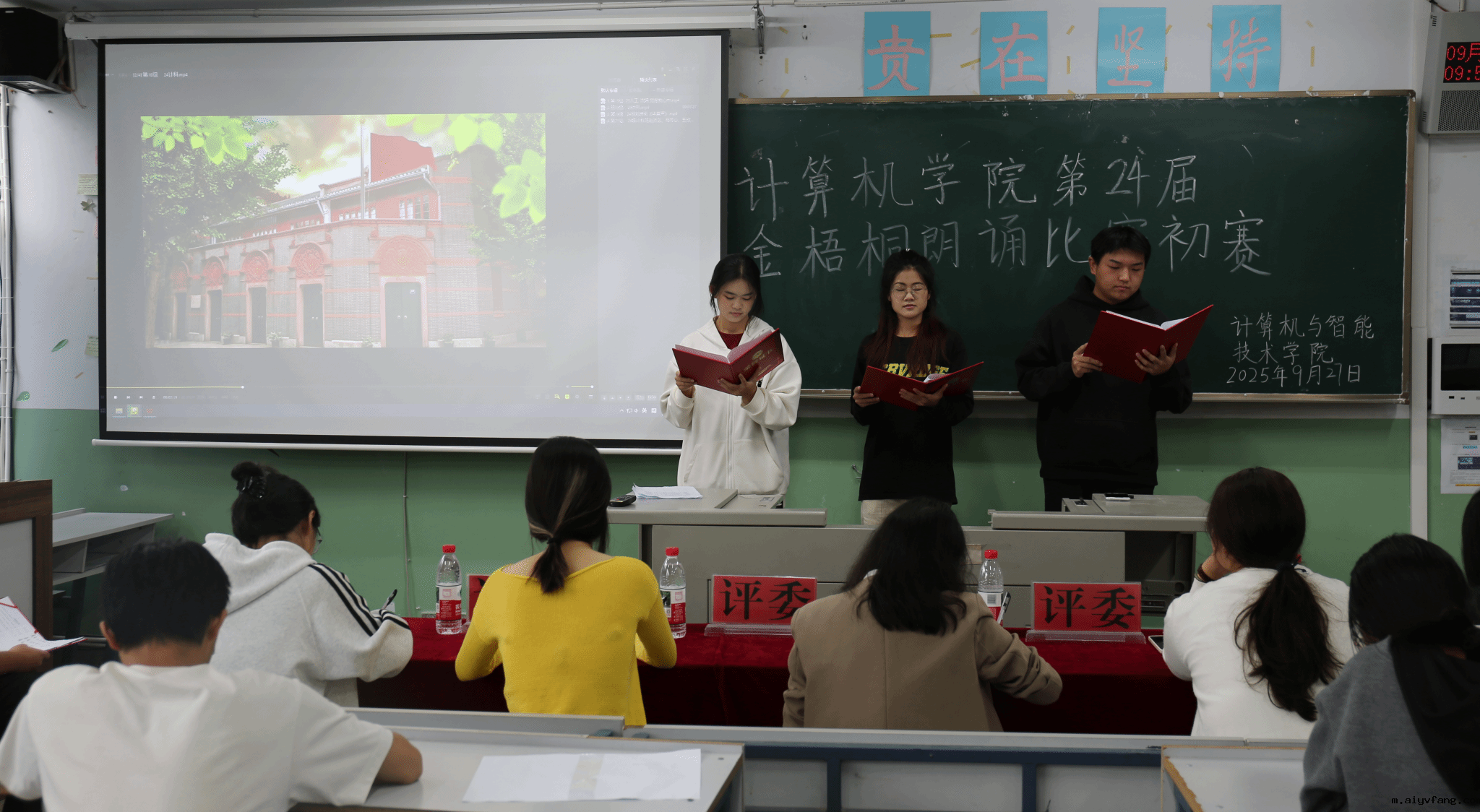 为大力推广国家通用语言文字、提升学生普通话整体水平,发挥经典诵读活动在校园文化建设中的积极作用,9月27日14:30,计算机与智能技术学院第24届“金梧桐”朗诵比赛在笃学楼228教室如期举行。本次比赛由计算机学院团委书记赵治红、数学与统计学院团委学生会主席团成员程旭峰、余永涛、杨国军,计算机学院团委学生会主席团成员担任评委。
